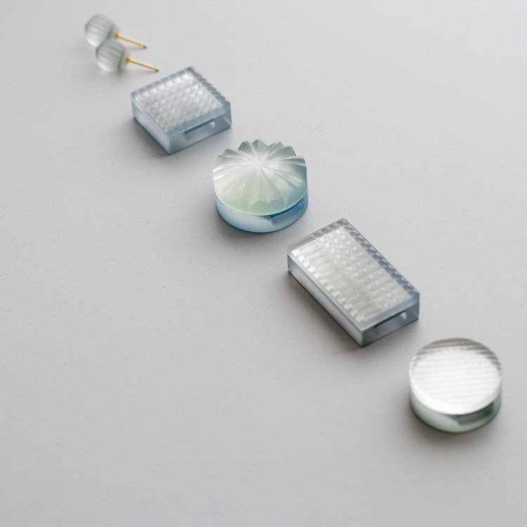 切子の帯留「かすみ」と「はなび」を、素材から設計する