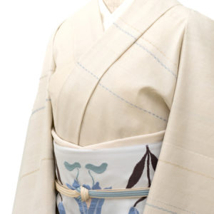 着物と帯とをワントーンでまとめあげたこちらのコーディネート。「洋服でいうところのワンピースのように。」とは作品担当の井上英樹。着物をワンピースのようにってありそうで無い…夏のワンピースは、イメージするだけで可愛いですよね。それでは、着物で作る夏のワンピースとは、どうなるのでしょうか…作品を見ていきましょう。