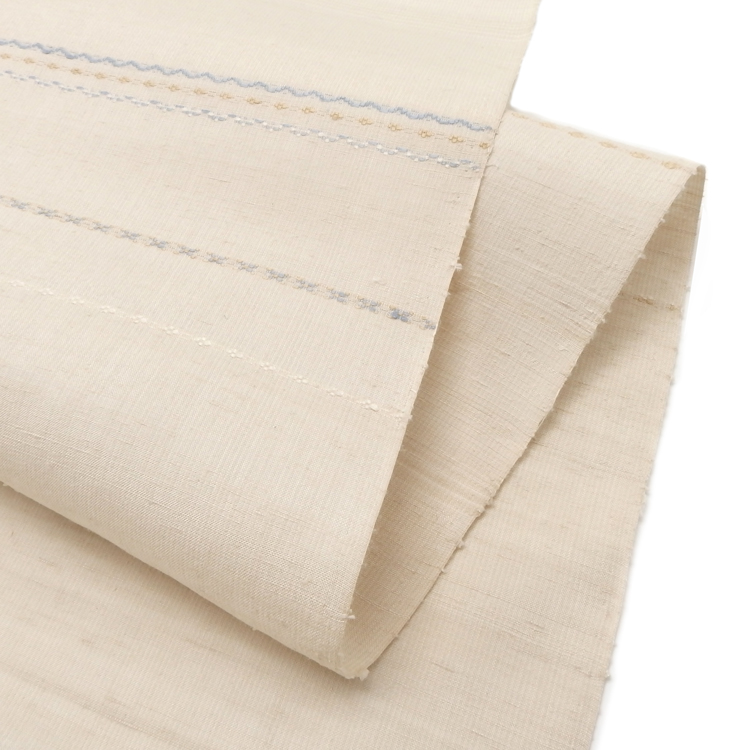 合わせて最後にご案内しますのは、洛風林のしじら織りのコート地です。こちらも今回のコーディネートには使用しておりませんが、肌寒くなってくる季節に、プラスする羽織りものとしてはとても合い、強くご案内したい逸品です。秋のコーディネートの楽しみは、季節を感じる色の重ね方や異素材の重ね方だと感じるのですが、いかがでしょうか。8月もそろそろ終わりです。お仕立ての期間もあります。お家で季節を先取りするコーディネートを考えながら、少し早めの準備で新しい季節にワクワクしたいものですね。