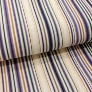 紬は横山俊一郎さんの工房作「三才山紬」です。白系の地色に透明感のある草木染の縞がすっきりとしています。