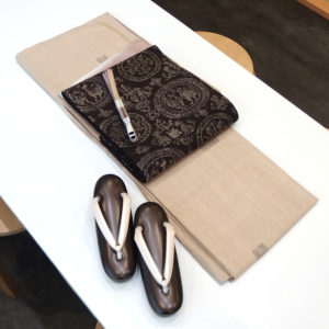 着尺は山形県米沢市より、伝統工芸士 佐藤新一氏の工房 白たか織に別注した「白鷹の手花織」着尺です。
