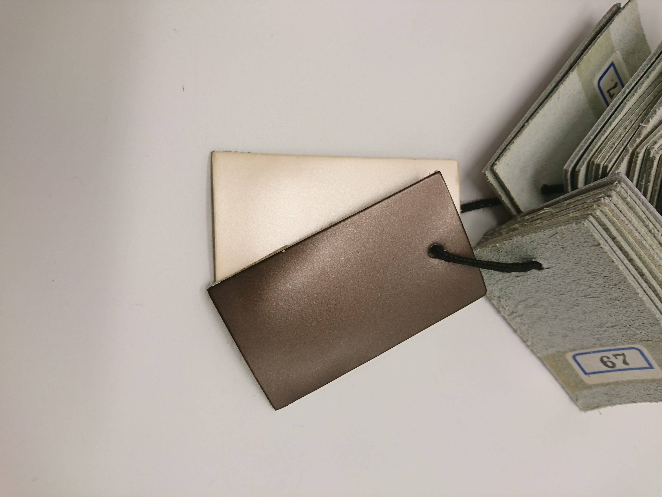 と意見をすり合わせていたのですが、二人の意見が一致したのは、インターネットで見つけた「勝山織物」から発表されていた焦げ茶の作品。