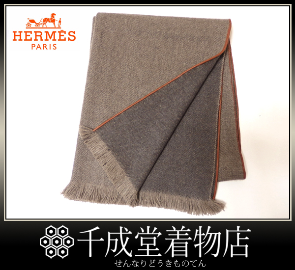 こちらは大判のボッテガ、ストール。総カシミアの贅沢な逸品です。グレイッシュな色感はまさに着物にもぴったり。