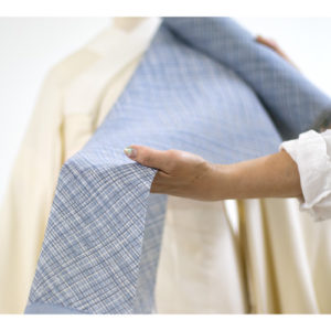 着尺は「織田工房 小千谷縮(本麻・オーガニックラミー糸) 」です。配色は、一見「白」に見えるかもしれませんが、そこは単純では無い「灰水色」。100種類以上の見本の中から当店で色柄厳選、新規に織り上げていただいた1点の色めとなります。小千谷縮は浴衣のもう一つ上、気負いのない洒落着の一つといったところです。何より嬉しいのはホームクリーニングが可能で、すぐに爽やかに乾くところです。
