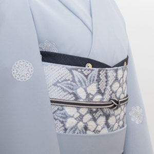 私自身、この作品の第一印象として「見栄えの良い、鑑賞できる帯」というのがありました。鑑賞できる帯は合わせるのが難しい時がありますが、この作品は実際にコーディネートしてみると、意外なほどに合わせやすく着物と溶け合った印象すら持ちます。