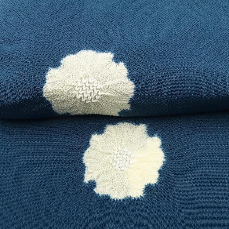 久呂田さんの工房ははっきりとした地色を使うことが多いのですが、今回はスモーキーなニュアンスカラーをチョイスしました。水色も寒々しさを感じさせず、紫系もクラシックすぎない絶妙なバランスです。本格的な中にも現代的なファッション感覚を見る、完成度の高い作品だと思います。