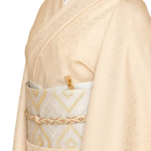 天平時代の文様から着想を得た愛らしい丸文が、生成の地色に白と銀糸で立体的に浮かび上がり、控えめながらも確かな存在感を放ちます。その織りの陰影と立体感が、無地感の中にも上質な趣を添え、高級感と洒落感を兼ね備えた一本に仕上がっています。芯を工夫することで、単衣帯としても夏帯としても仕立てが可能で、初夏だけに留まらず、長くお楽しみいただけるのも嬉しいところです。シンプルでありながら計算された美しさの逸品、織楽浅野さんならではの世界観をご堪能ください。