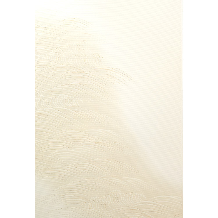 たとえば、品格ある場面では鈴木織物の「水衣錦」を合わせて。能装束の伝統衣装からの着想、という出自ですが、現代の着姿に寄り添う軽やかさを併せ持つ、完成度の高い帯作品です。