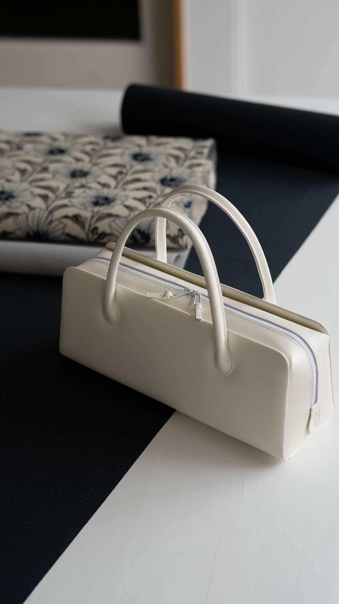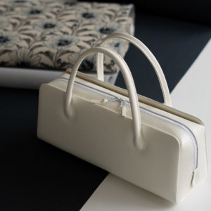 さらに、利休バッグは和装小物の名門「衿秀」さんに別注した、総本革の一品を合わせました。弊店から直接国内のタンナーに制作を依頼するレザー素材はあえて真っ白ではなく、少しアイボリーを帯びた色合い。夏の着物とも自然になじみ、清楚でありながら上質感のある佇まいが完成します。