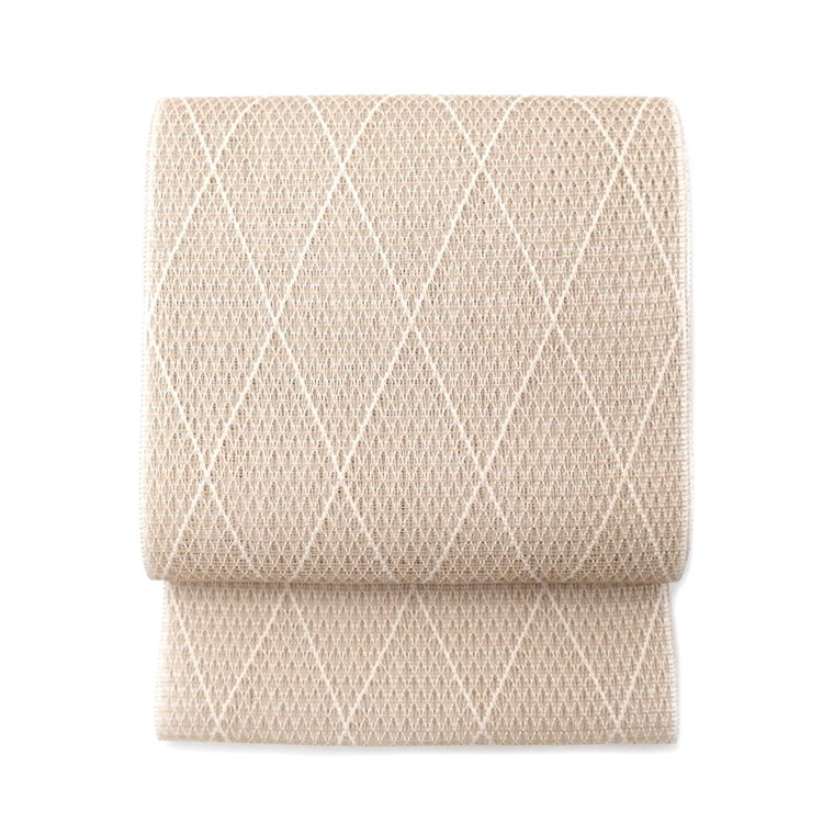 合わせた帯は、人間国宝 故・北村武資の工房「織匠きたむら」による「上品羅」。羅ならではの透け感と緻密な織りの表情は、明石縮の軽やかな絹と調和し、涼しげながらも確かな品格を添えてくれます。やわらかな地色と繊細な幾何文様が、淡い色合いのきものに奥行きを与え、夏のお洒落着としての完成度を一段高めています。