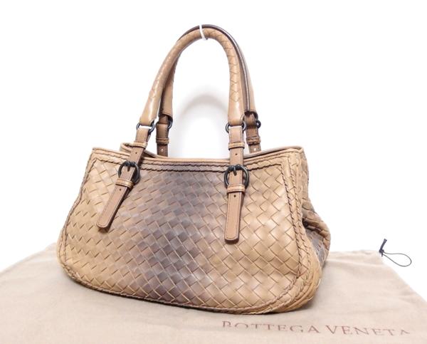 今回、両コーディネートに合わせたバッグは、ボッテガヴェネタのイントレチャート(編み込み)ハンドバッグ。