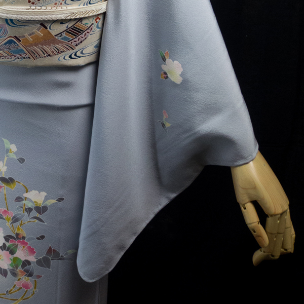 美しい着姿の裄丈は腕を斜め45度程度下げ、手首の尺骨(手首の小指側に突き出た骨の部分です)が隠れるくらいの長さです。
