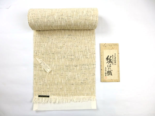 手引き木綿×和紙(古文書を裂き、撚った糸です)八寸帯 ¥400,000 / お見積り可