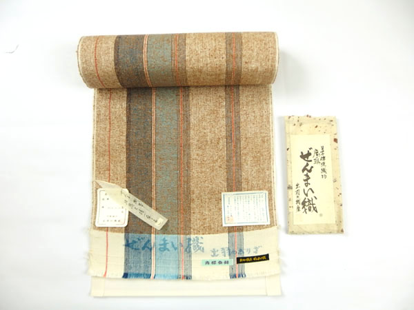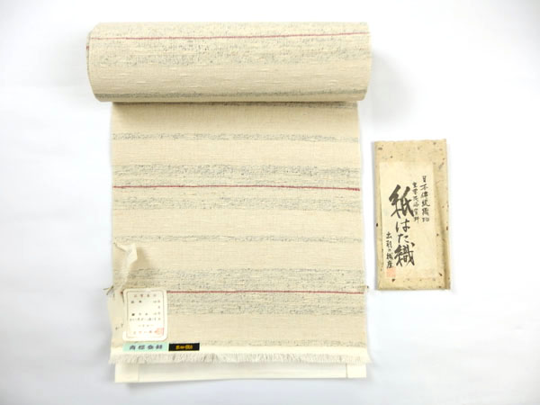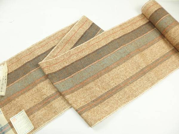 綿×和紙(古文書を裂き、撚った糸です)横段柄 八寸帯 ¥300,000 / お見積り可