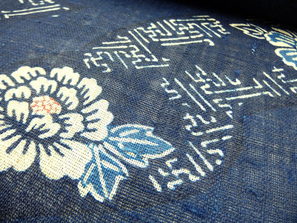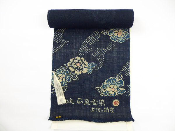 これが本当の藍染め<田中昭夫氏作 正藍型染め帯 / 木綿とからむし織>