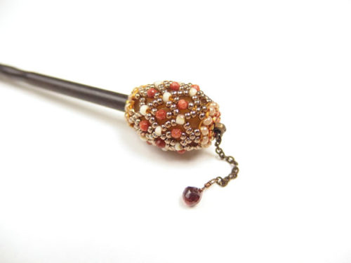 Sakuraco(さくらこ) かんざし サンドストーン×ガーネット 濱守櫻子氏作 ビーズジュエリー /簪 カンザシ