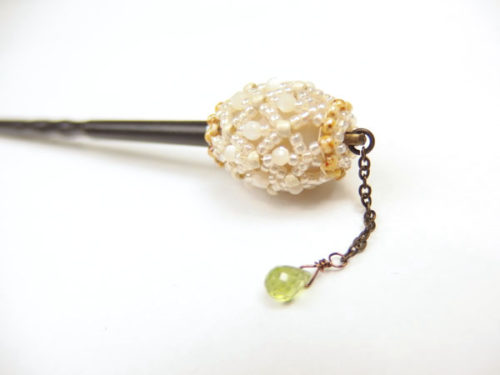 Sakuraco(さくらこ) かんざし マザーオブパール×ペリドット 濱守櫻子氏作 ビーズジュエリー /簪 カンザシ