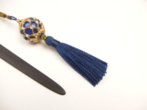 Sakuraco(さくらこ) 帯飾り 久寿玉×瑠璃色 ブルーレース 濱守櫻子氏作 ビーズジュエリー / 根付 タッセル