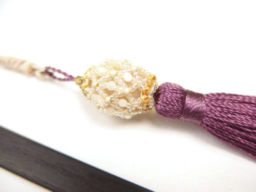 画像元:千成堂着物店公式通販サイト Sakuraco(さくらこ) 帯飾り 棗×京紫 マザーオブパール 濱守櫻子氏作 ビーズジュエリー / 根付 タッセル