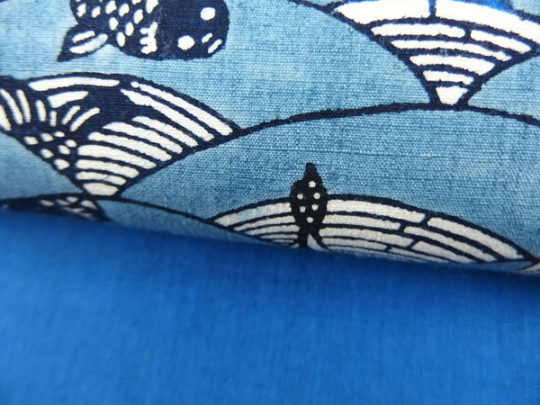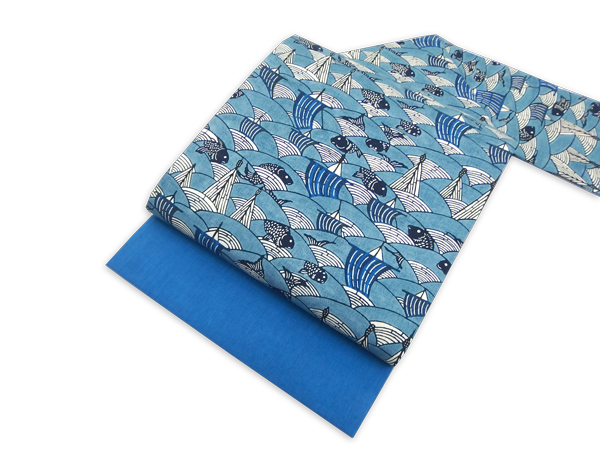 選ばれたのは波、船、生き生きとした魚の意匠です。通常、氏の作品は細密な染めが特徴ですが、古典的で素朴な意匠をあえて選んでいます。