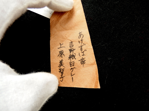 吉野織の技法でつくられていますが、よくある緊張感のある吉野織ではなく実におおらか。実際に優しいお人柄の方なのですが、帯のやさしさにも表れている気がします。