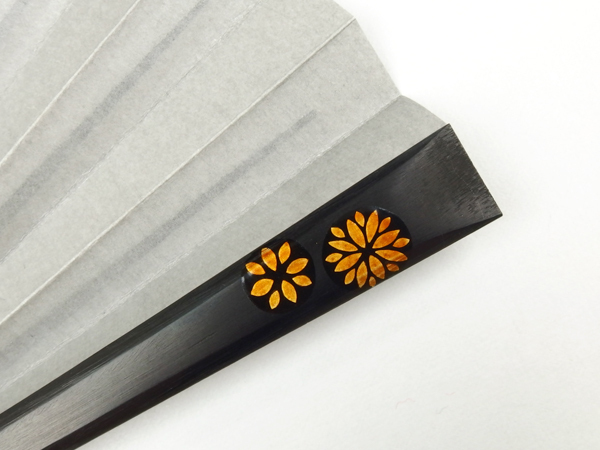 また、黒い骨の扇子に金色の蒔絵のものは、少しフォーマルな着こなしにも相性ばっちりです。訪問着や付下げを着るシーンにもおすすめ、高級感のある作品です。