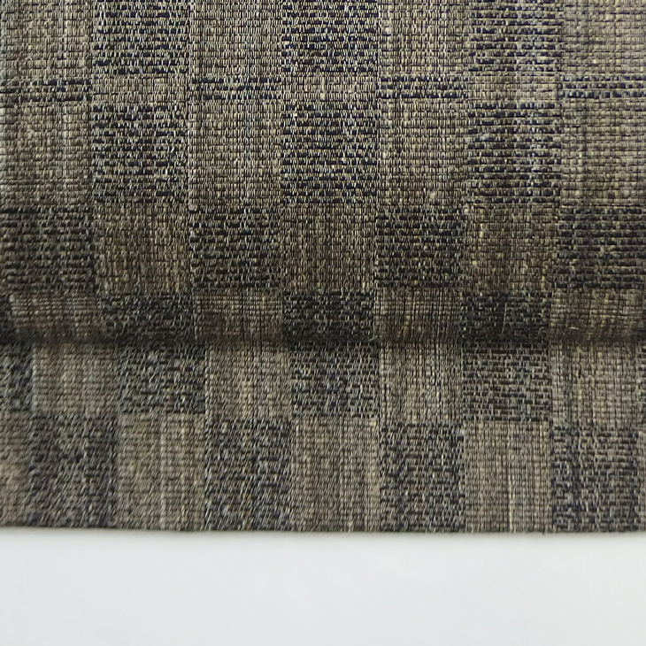 そして、更にご注目いただきたいのは、こちらの八寸帯です。小倉商店の自信作、地機で織った本場結城の八寸帯、持った瞬間に羽のような軽さに驚かれると思います。良質な真綿から手でとった糸は空気を含み、その質感が生きています。色を細かく選び、織り出した格子文様は素朴なだけでなく、どこか気負わない洒脱な表情。経糸をよく見ると絣糸をつかっています。一本一本異なる糸の表情がさらに質感を向上、他にない新しい試みです。織を熟知したデザイン設計は、まさにここならではです。絣糸は一本一本すべてが違います。世界中に同じものは一つとして存在しない、あなただけの帯です。