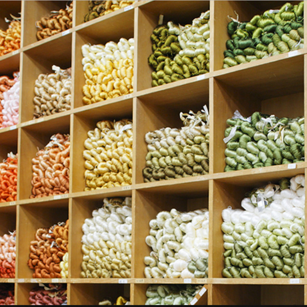 鈴木織物さんは常に1000色を超える色糸をストックし、質の高い配色を創ることに心を砕いています。