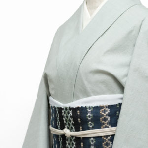 合わせた帯は「喜如嘉の芭蕉布」これは、私が沖縄を訪ねたときに、平良美恵子さんにお願いした別注品となります。