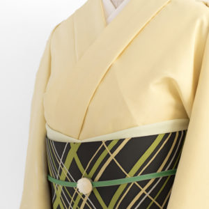 トーンを押さえた帯ですが、銀鼠色とベージュの分量が絶妙で、可愛らしい雰囲気に仕上がっています。