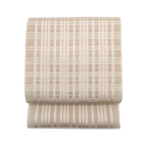 続いてご紹介するこちらの帯は、上品な「金」が目に飛び込みます。北村武資氏の魚々子縞「市松」の袋帯です。帯だけで眺めていられるような美しい帯で、美しさはもちろんですが、どんなお着物も格段上に魅せてくれる魔法の帯になること間違いなしです。市松文様も「ずっと続く」ことから繁栄の意味を持ち大変縁起の良い文様。